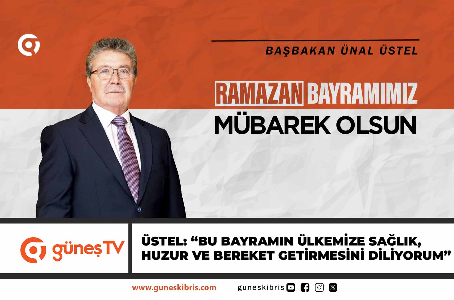 Başbakan Ünal Üstel, Ramazan Bayramı dolayısıyla yayımladığı mesajda, bayramın ülkeye sağlık, huzur ve bereket getirmesini diledi.