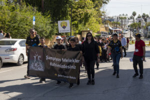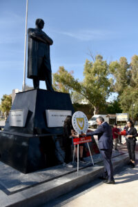 Lefkoşa’da Atatürk Büstü önünde düzenlenen törende, Lefkoşa bölgesindeki ilkokul öğrenci ve öğretmenleri de hazır bulunurken, 6 Şubat’ta Türkiye’deki depremde hayatını kaybeden Gazimağusa Türk Maarif Koleji öğrenci, öğretmen ve velilerin anısına “Şampiyon Melekler kalbimizdesiniz” yazılı pankart açıldı.