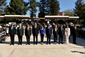 Törende ilk olarak Milli Eğitim Bakanı Nazım Çavuşoğlu, Milli Eğitim Bakanlığı çelengini Atatürk Anıtı’na sundu. Sonrasında saygı duruşu ve İstiklal Marşı’nın okunmasıyla tören sona erdi.