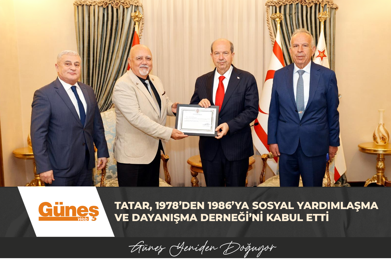 Görüşmede, Derneğin KKTC Temsilcisi Hüseyin Yiğit tarafından Cumhurbaşkanı Ersin Tatar’a Fahri Üyelik beratı takdim edildi.